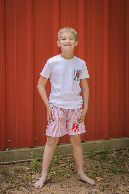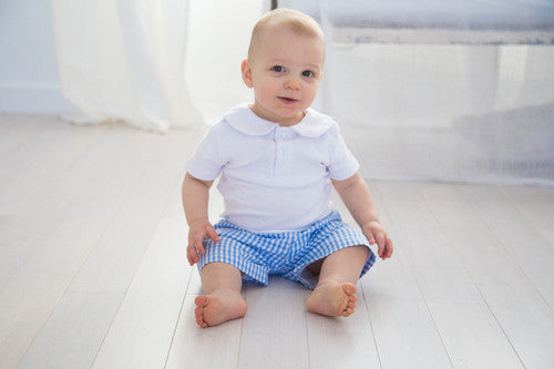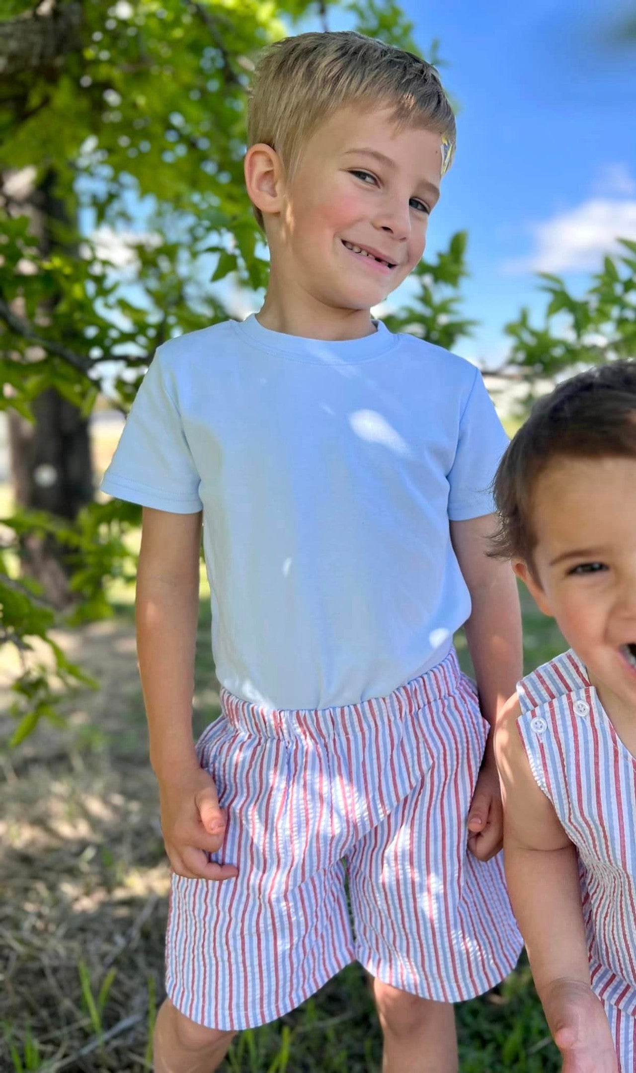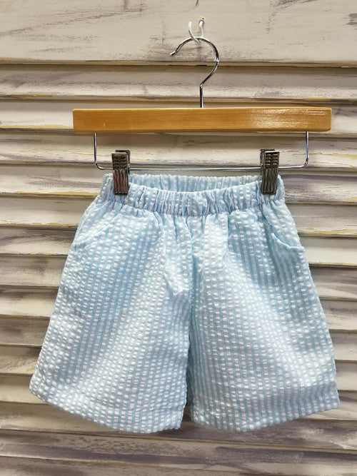 Get your little guy ready for the warmer seasons with our boy's woven shorts. Made of 100% cotton, these light blue seersucker shorts are both stylish and comfortable. The shorts are fully lined and feature an elastic waist for easy wear. With convenient pockets, these shorts are perfect for storing small essentials. Available in various color options, these quality shorts are ideal for spring and summer. Personalize them with embroidery for a unique touch. Sign up for a wholesale account at Love That Cotton if you're a business. Shop now and dress your little one in style!