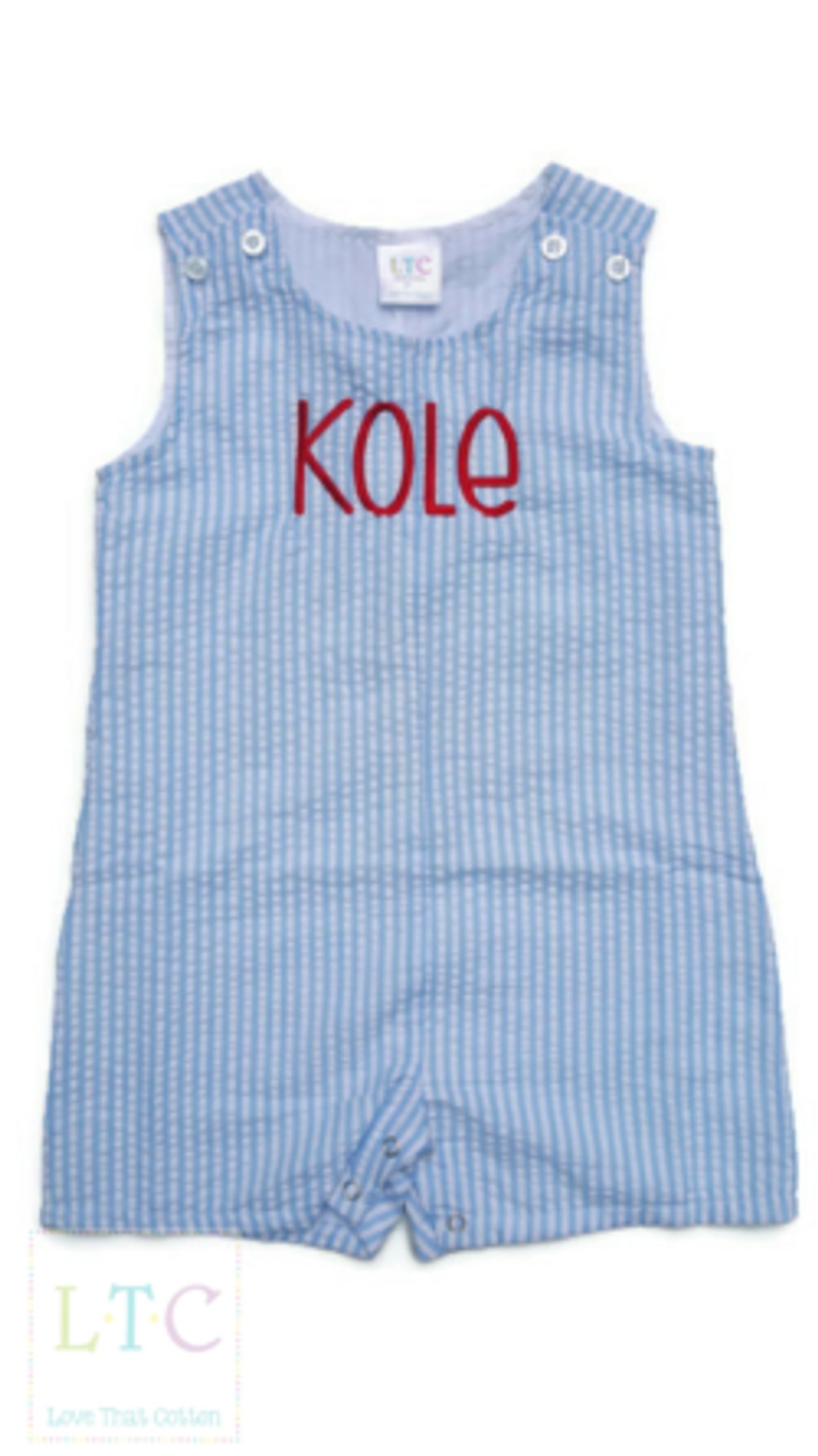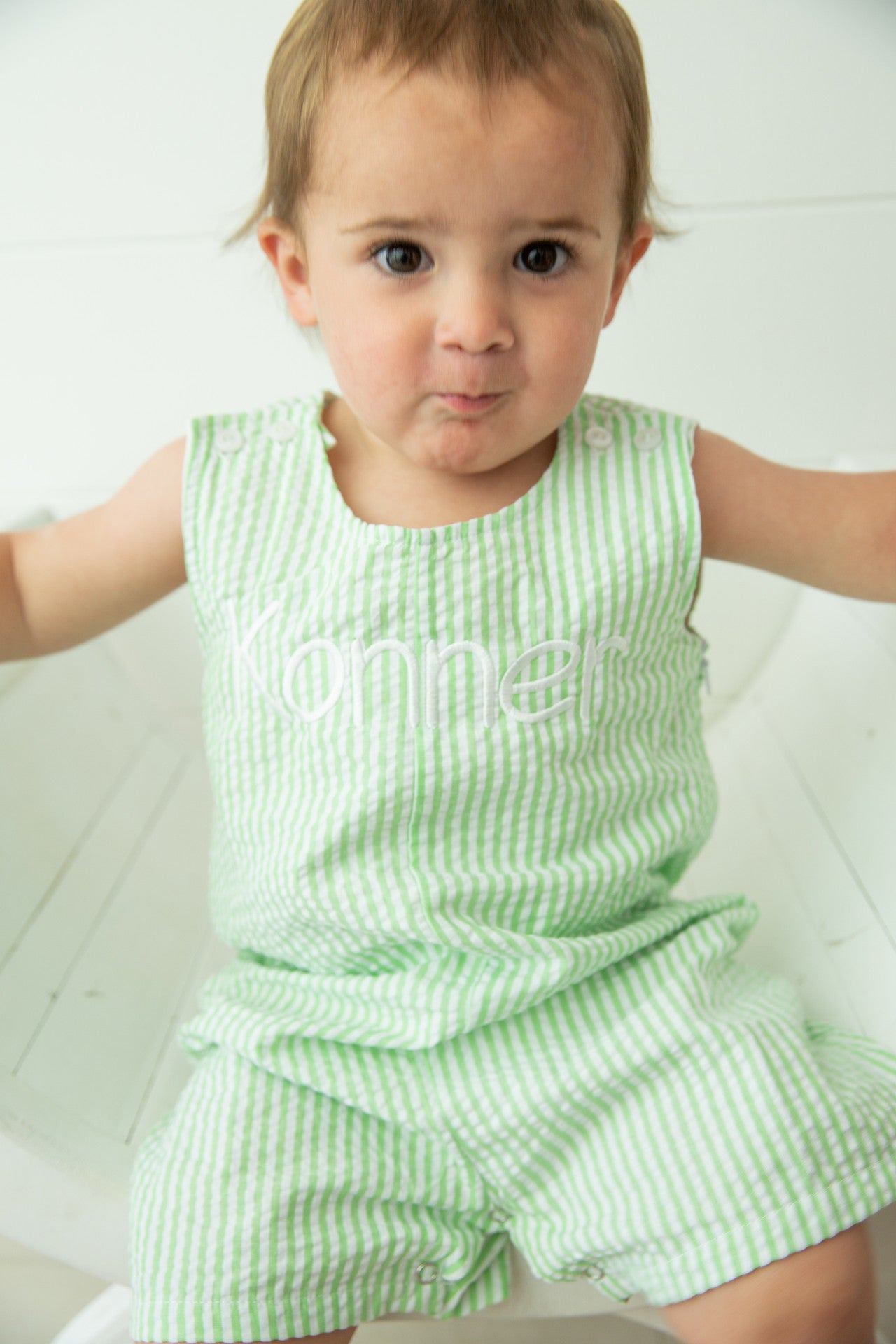 Introducing our boys' Jon Jon, a classic and stylish choice for your little one. Made from 100% cotton, this seersucker Jon Jon is perfect for spring and summer. It features double buttons on the straps and is fully lined with 100% cotton fabric. The snaps in the crotch ensure easy diaper changes, while the buttons at the shoulders add a touch of charm. Available in various colors, this Jon Jon is a versatile and comfortable outfit. Personalize it with our embroidery options, available on all our kids' clothing and baby gifts. Sign up for a wholesale account at Love That Cotton to explore more.