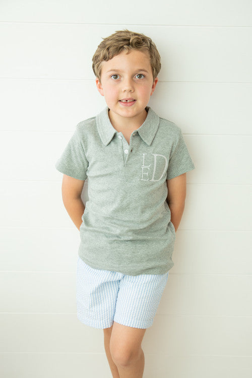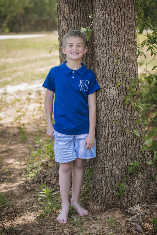 Dress your little boy in style with our boys' short sleeve polo shirt. Made from 100% interlock cotton, this shirt is both comfortable and durable. It features a classic collar and buttons at the neck for a polished look. Pair it with our seersucker shorts for a complete outfit. With double stitching on all hems, this shirt is built to last. Available in a variety of colors, it's perfect for any occasion. Personalize it with embroidery for a unique touch. If you're a business, sign up for a wholesale account to access our products. Shop now and elevate your little one's wardrobe.