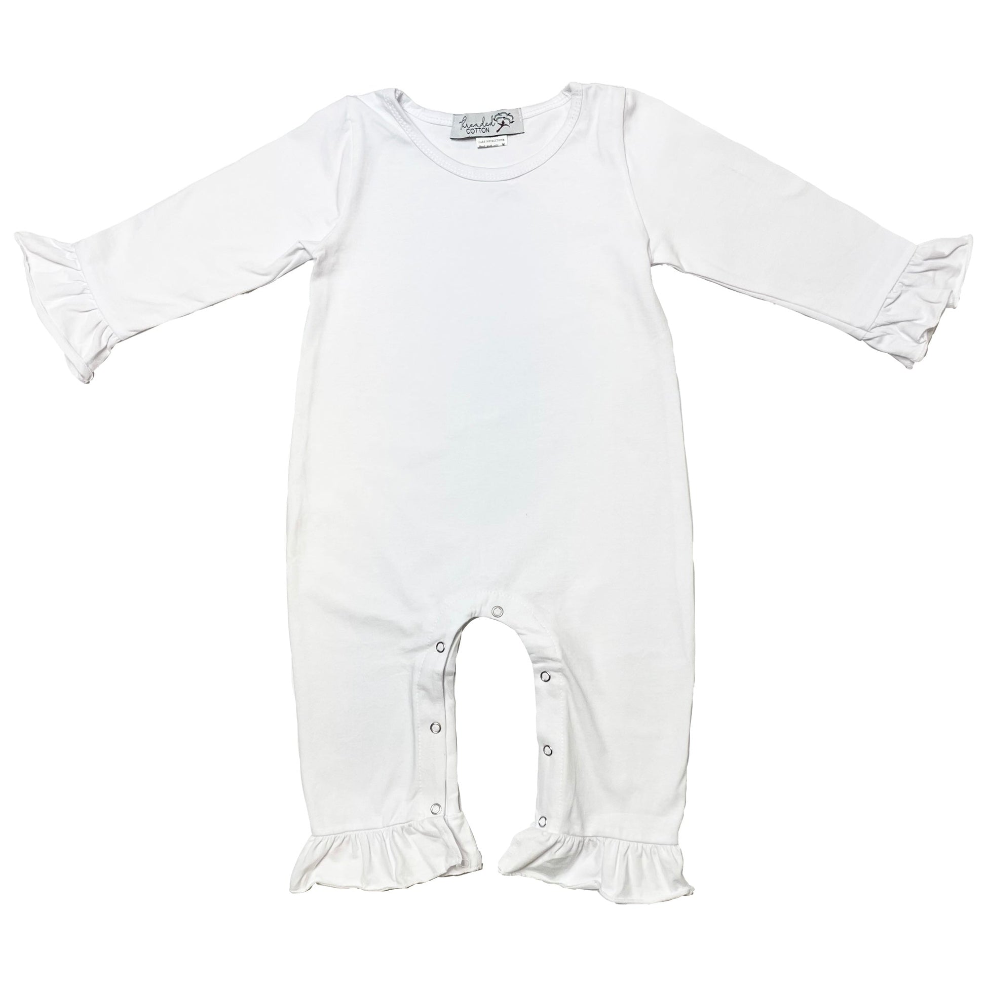 Threaded Cotton Girl Long Sleeve Ruffle Romper (95% Cotton)