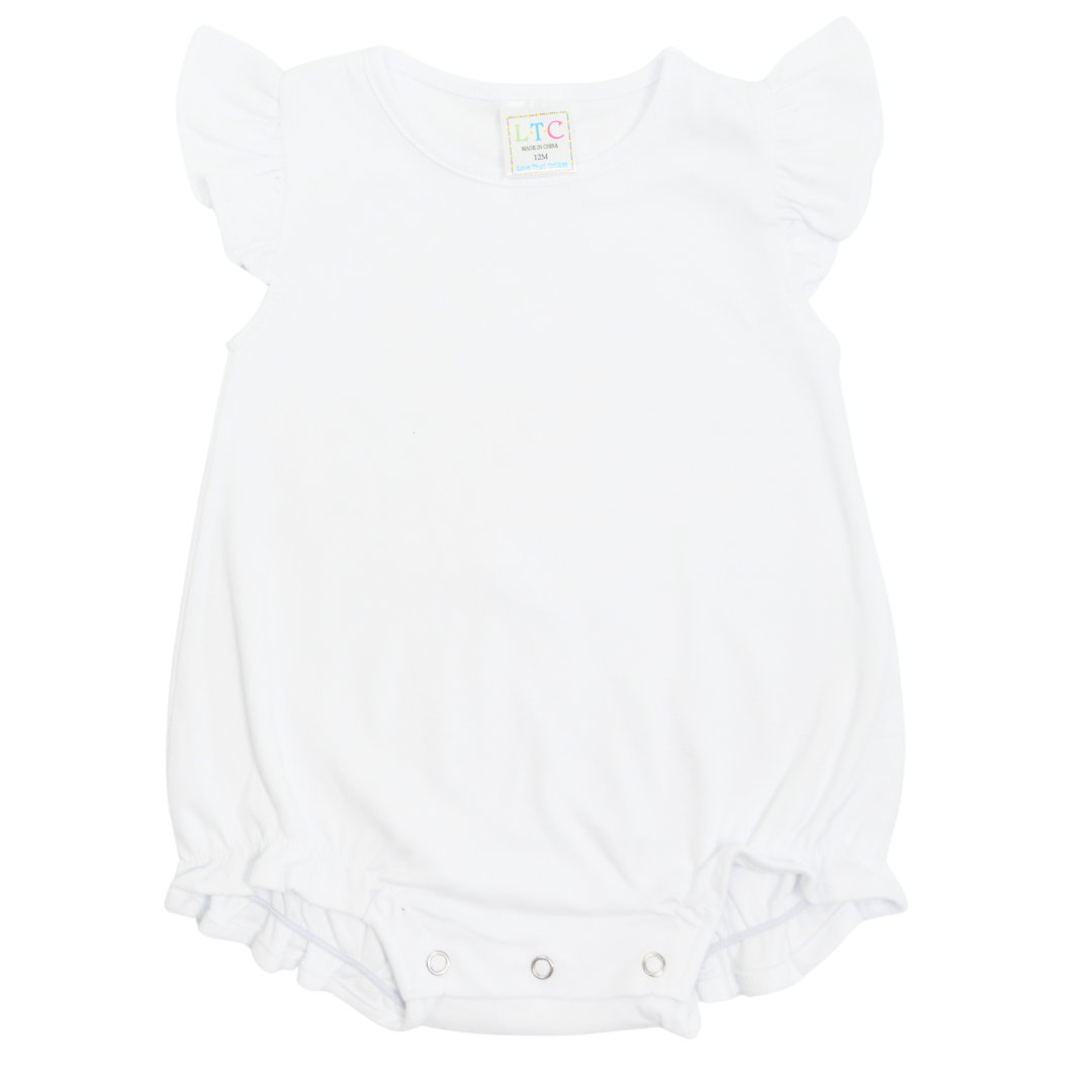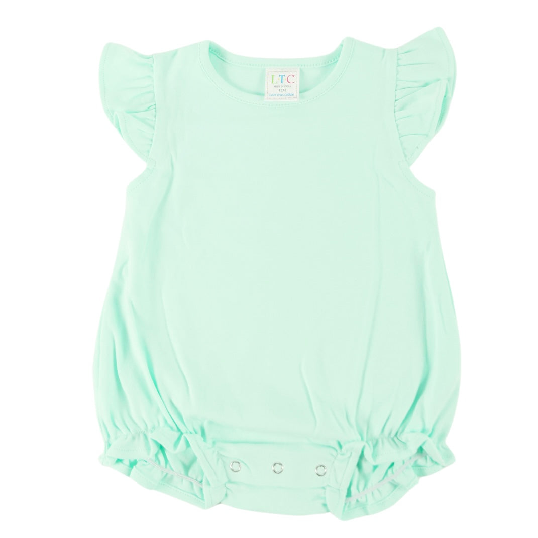Experience ultimate comfort with our flutter sleeve knit bubble. Made with 100% cotton, this bubble offers a soft and stretchy fit. Elastic around the legs ensures a secure and comfortable fit. With snaps in the crotch for easy diaper changes, this 5.5 oz bubble combines convenience and style. Available in a variety of colors, you'll want to have one in every shade. Personalize it with embroidery for a unique touch. If you're a business, sign up for a wholesale account at Love That Cotton. Shop now and embrace comfort and style with our unisex knit bubble.