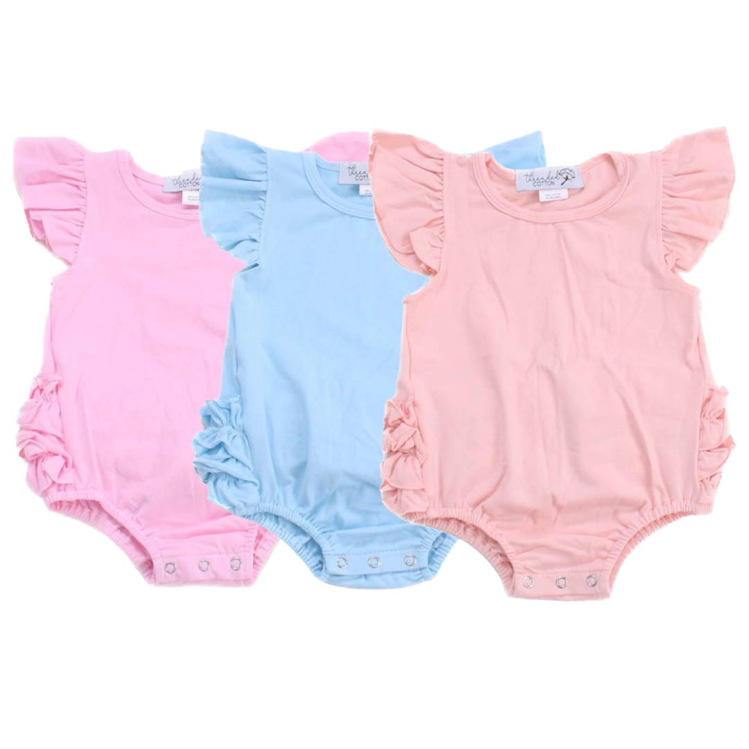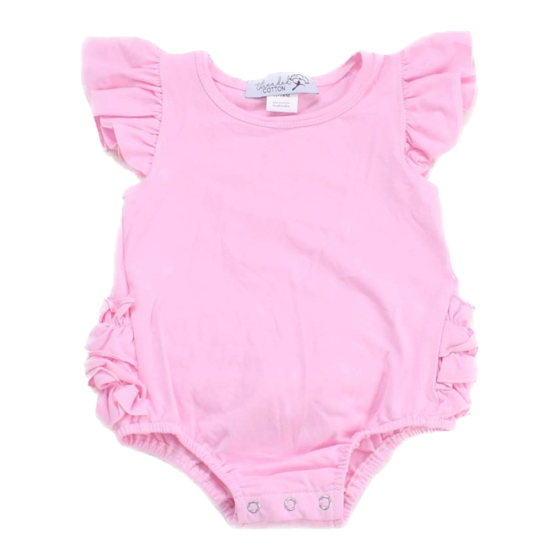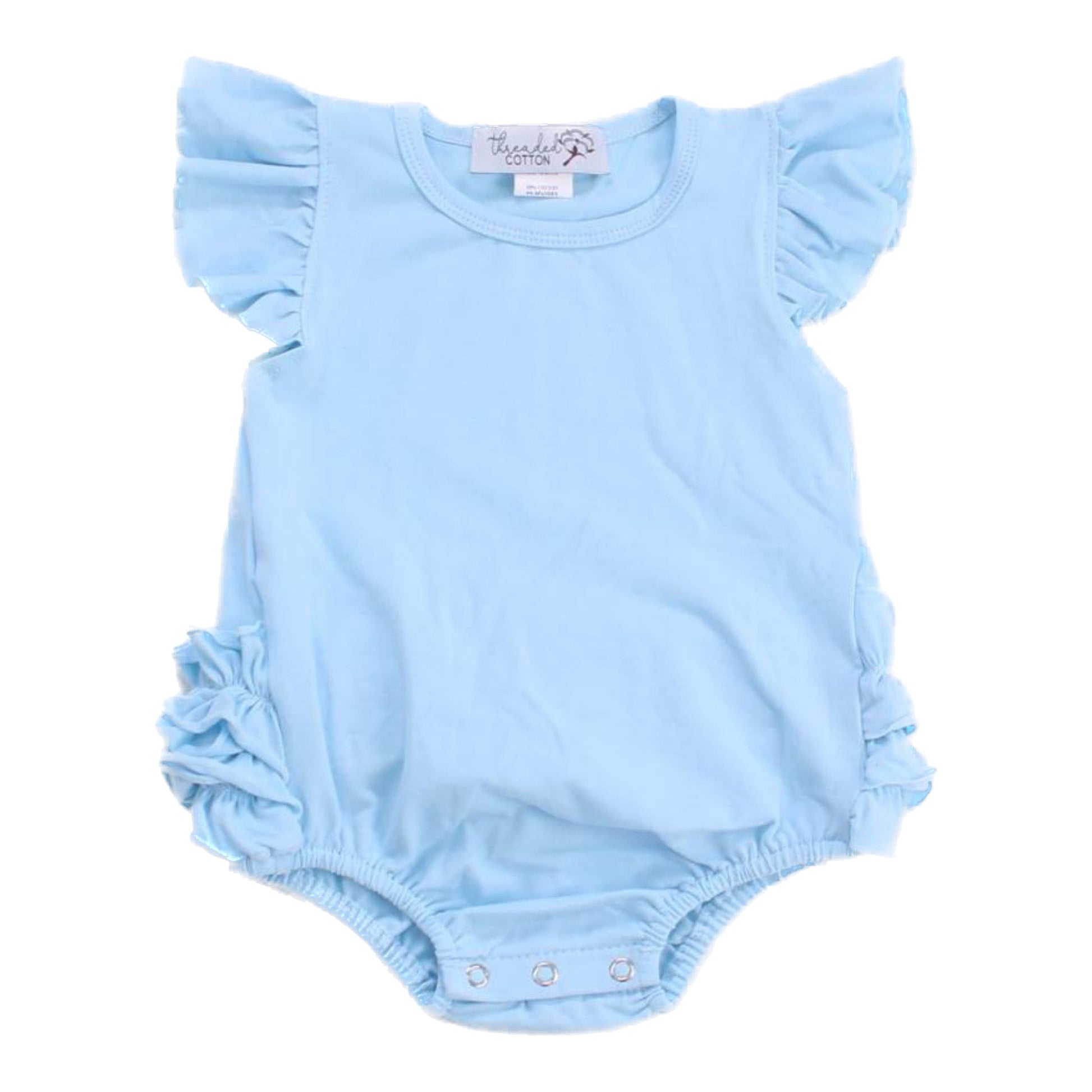 Threaded Cotton Flutter Sleeve Ruffle Bottom Bubble (95% Cotton/5% Spandex)