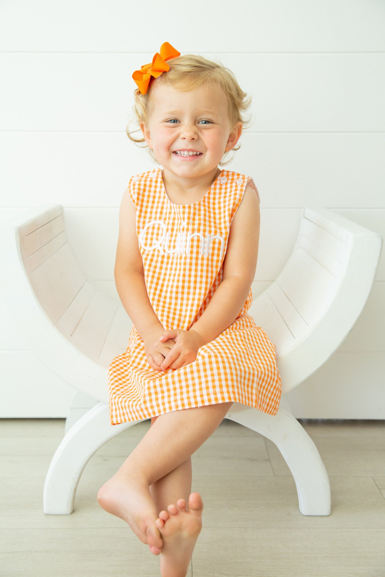 This jumper is super cute, and easy to dress up or dress down. It is perfect for embroidery or applique. It is fully lined and has 2 buttons on the shoulder straps. Looking for a sibling set? Our Jumpers come in various colors and are made to match perfectly with our longalls and boys gingham/ corduroy pants. Don't forget to get an LTC polo or peter pan collar to go under it. It is perfect for the holidays. Remember that we offer embroidery on all of our kids clothing and baby gifts. Are you a business? Please sign up for a wholesale account.