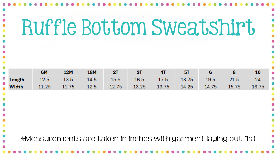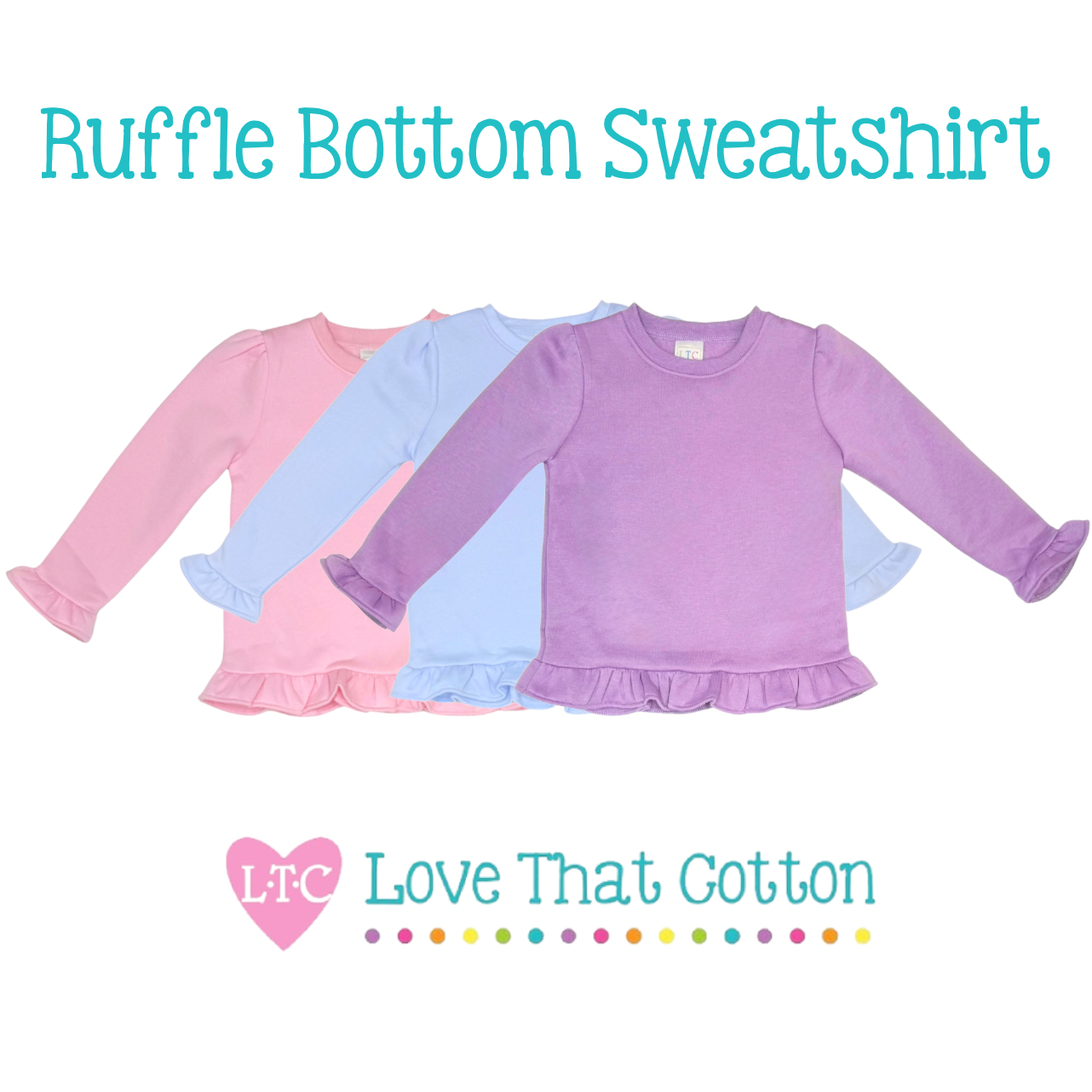 Our Ruffle Bottom Sweatshirts are the perfect addition to your child's wardrobe. Made from high-quality 100% interlock cotton with a 240g weight, these sweatshirts are comfortable, durable, and perfect for any occasion.
