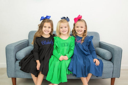 Perfect for twirling, this dress features a long skirt that allows your child to move freely. The dress is both comfortable and durable, making it perfect for everyday wear or special occasions. Personalize it with embroidery to add a special touch, and if you're a business, be sure to sign up for our wholesale account to enjoy even better pricing.
