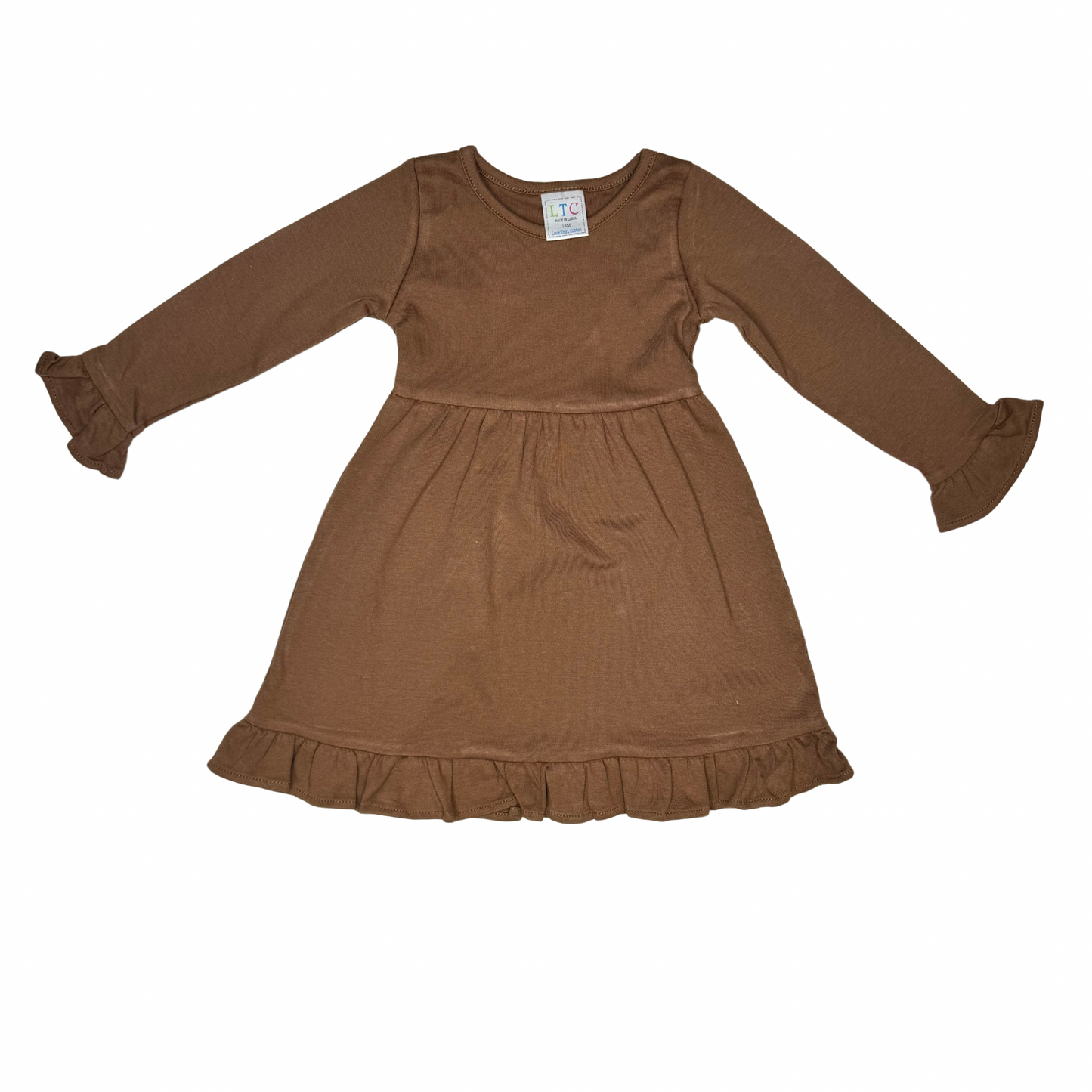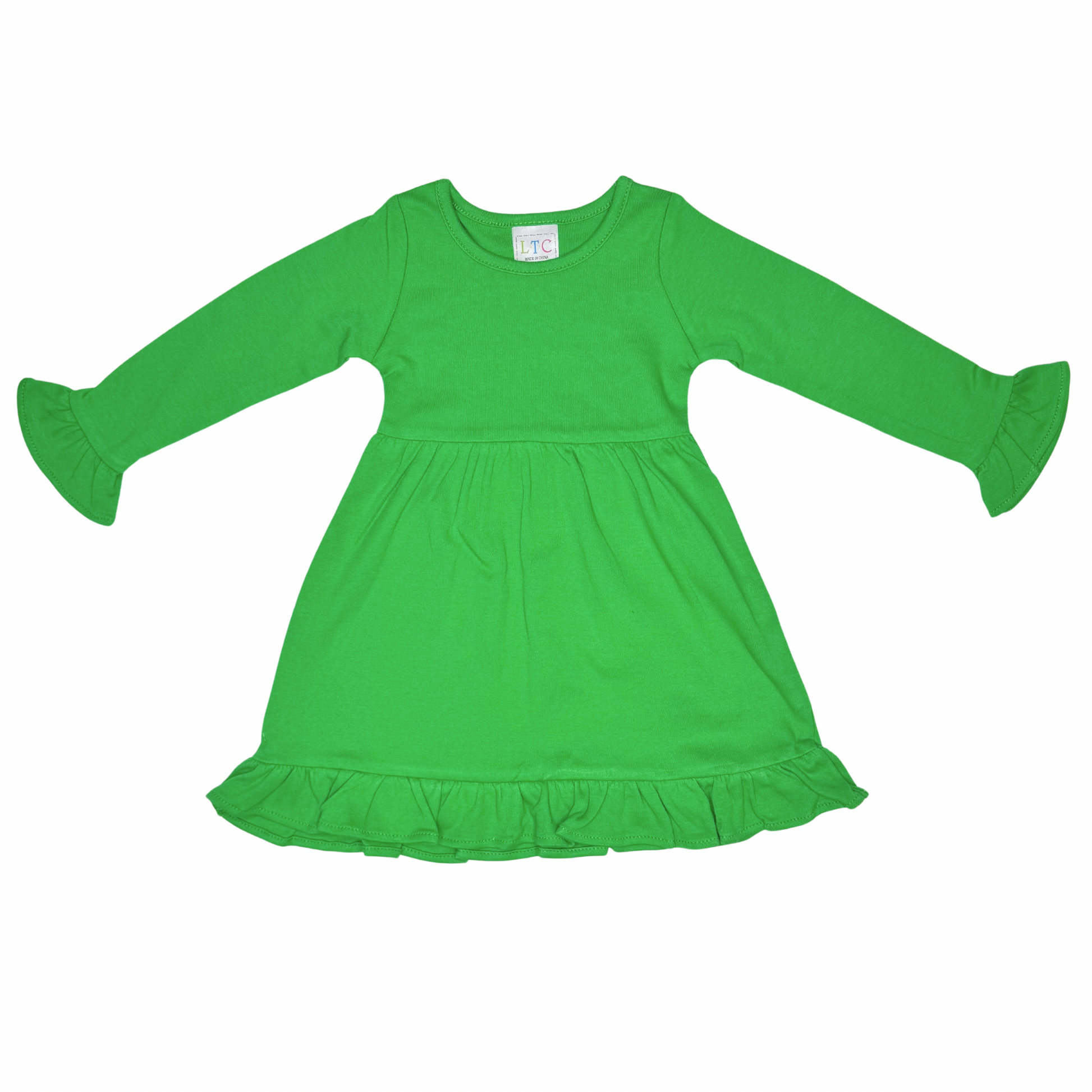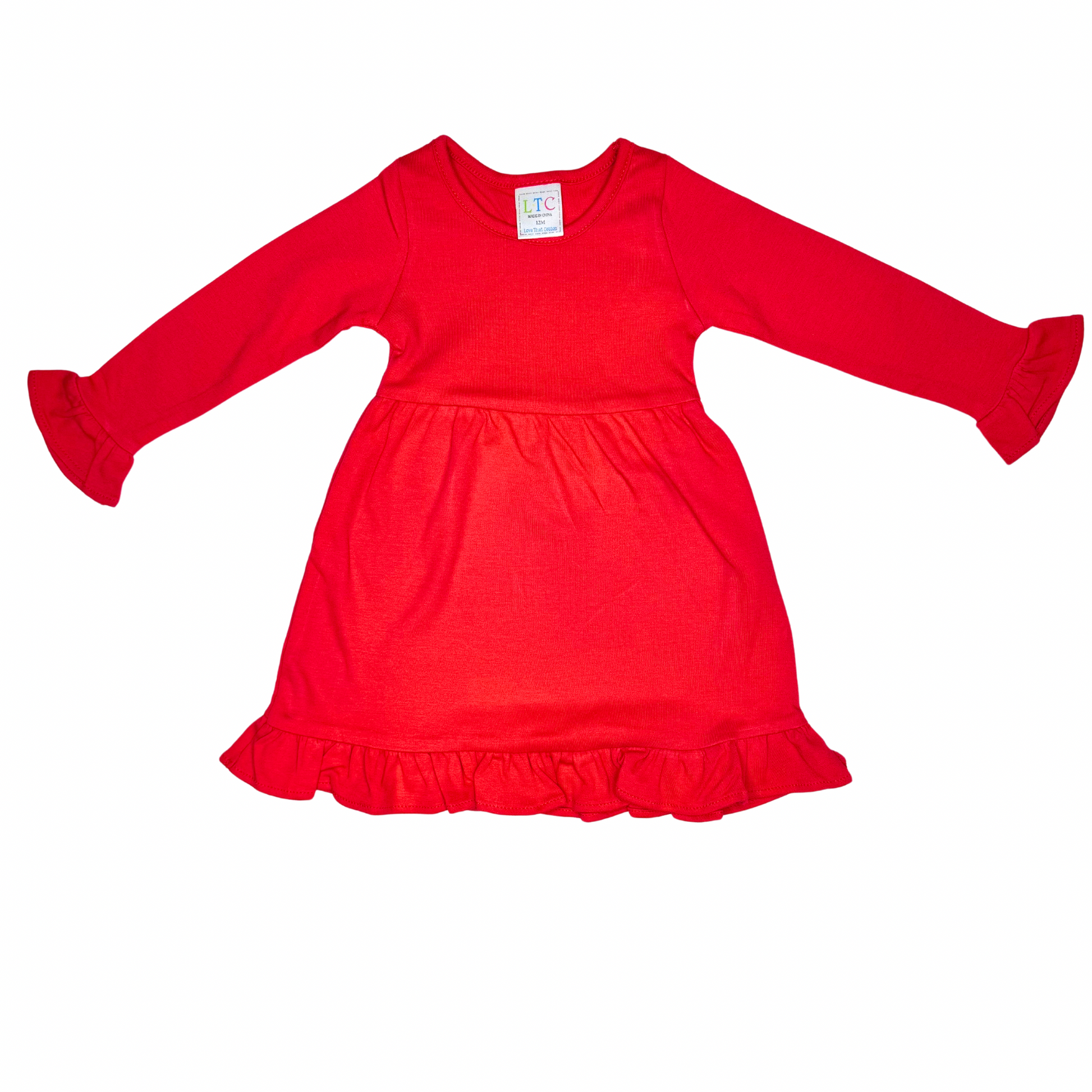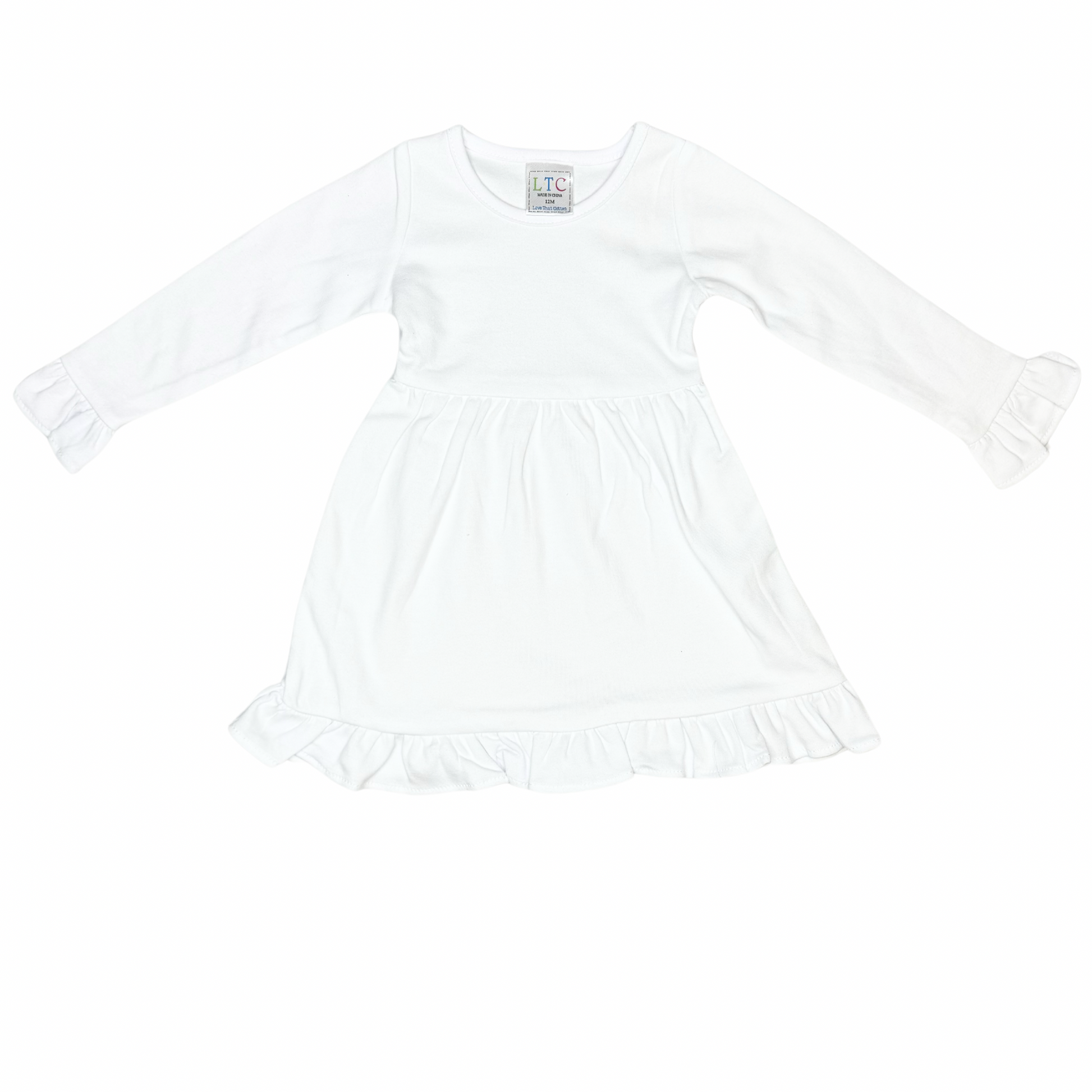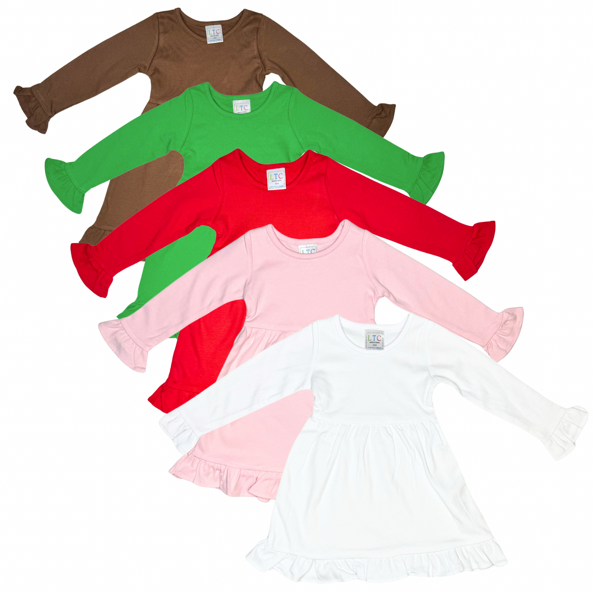 Discover our charming girls' winter dress, perfect for the colder months. Crafted from 100% interlock cotton with a weight of 190g, this dress offers warmth and comfort. It features binding around the neck, gathers by the shoulder, empire waistline and a delightful ruffle on the sleeves and bottom. The dress is double stitched throughout, ensuring durability. With a range of colors available, you'll want to add this dress to your little one's wardrobe in every shade. Explore our collection at Love That Cotton and consider signing up for a wholesale account.