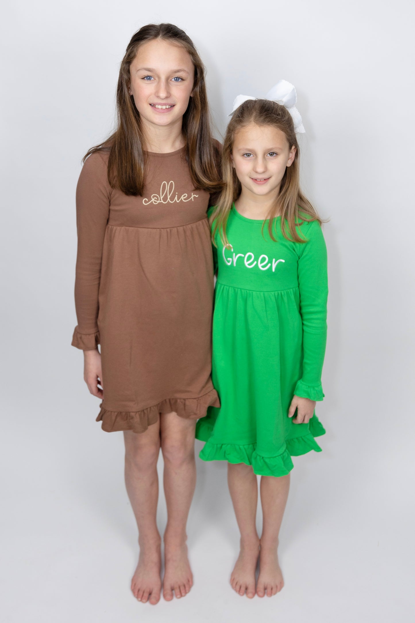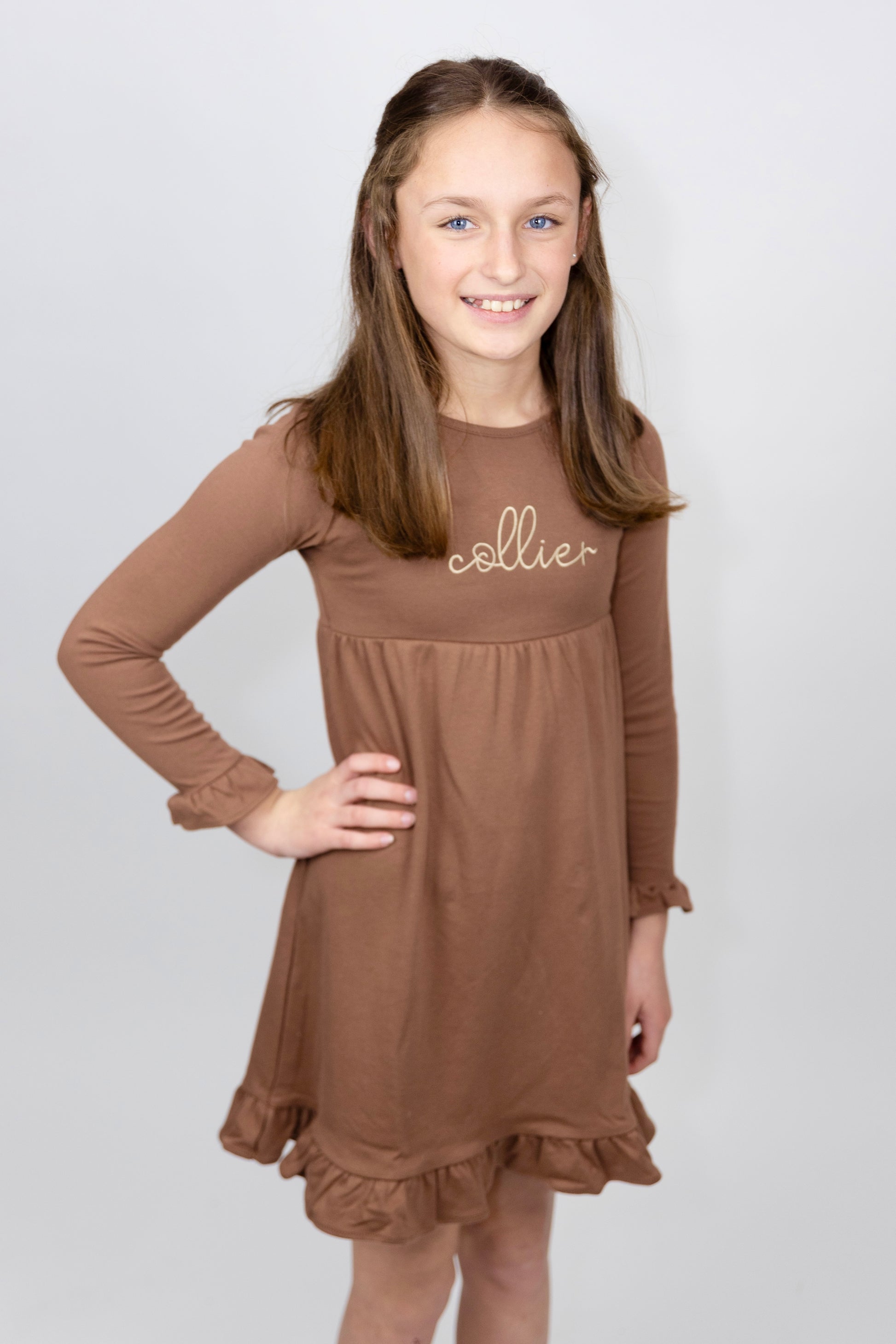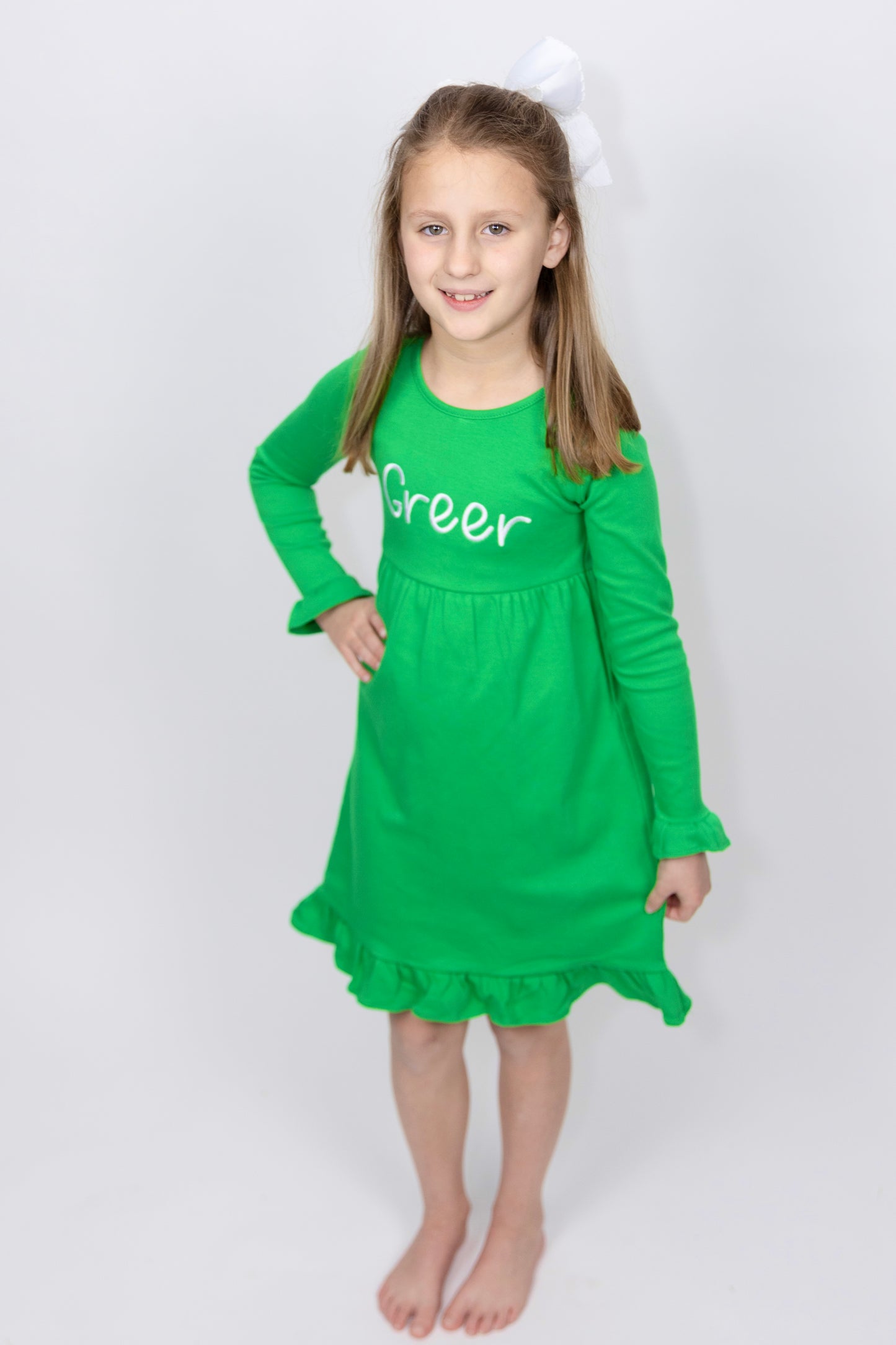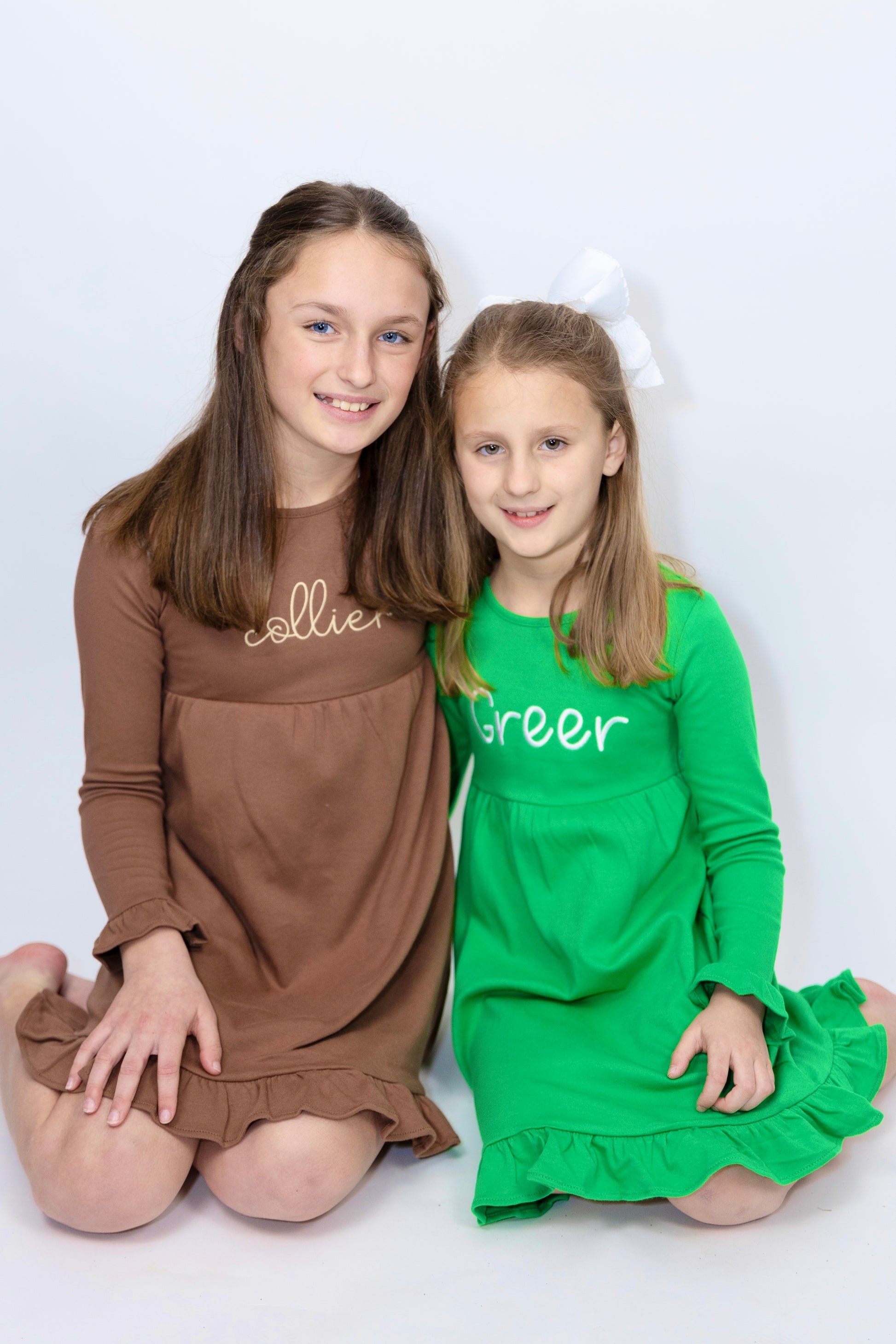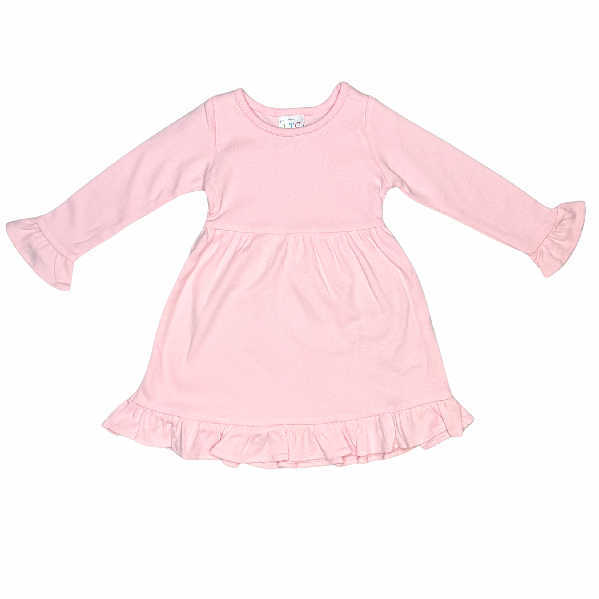 Discover our charming girls' winter dress, perfect for the colder months. Crafted from 100% interlock cotton with a weight of 190g, this dress offers warmth and comfort. It features binding around the neck, gathers by the shoulder, empire waistline and a delightful ruffle on the sleeves and bottom. The dress is double stitched throughout, ensuring durability. With a range of colors available, you'll want to add this dress to your little one's wardrobe in every shade. Explore our collection at Love That Cotton and consider signing up for a wholesale account.