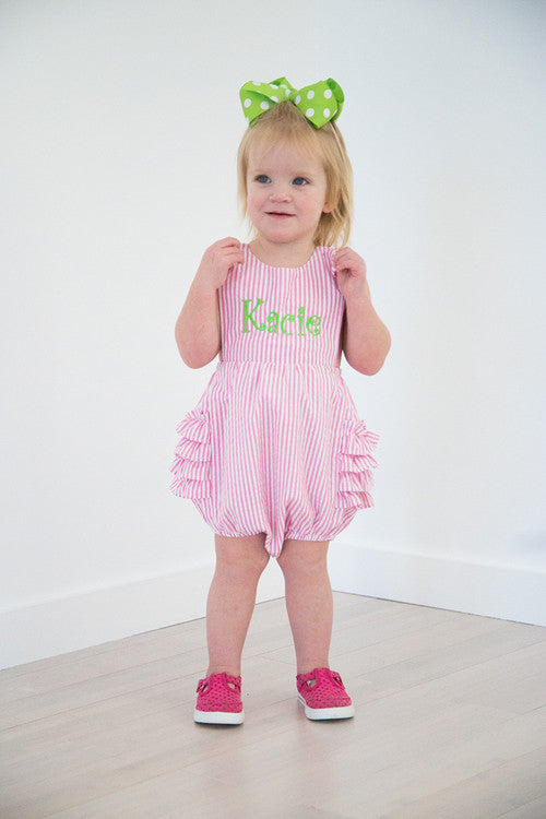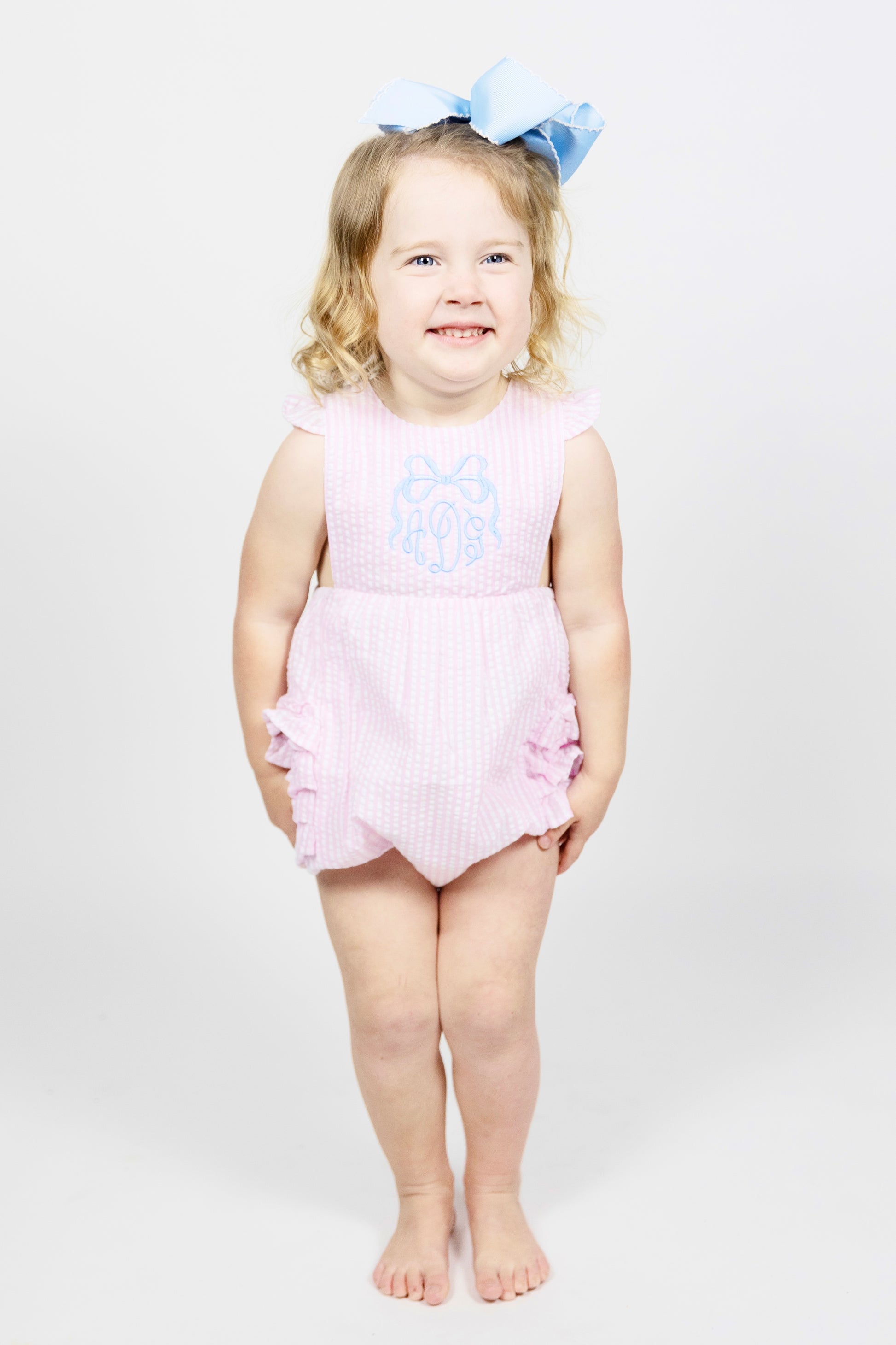 Ā Dress your little girl in style with our adorable girls' ruffle sunsuit. Made from 100% cotton, this sunsuit is fully lined, featuring snaps at the crotch and adjustable buttons on the shoulder straps. The elastic leg openings ensure a comfortable fit. Available in various colors, this sunsuit is perfect for birthdays, Easter, 4th of July, and other spring and summer gatherings. Explore our collection at Love That Cotton and enjoy optional embroidery services. Wholesale accounts available.