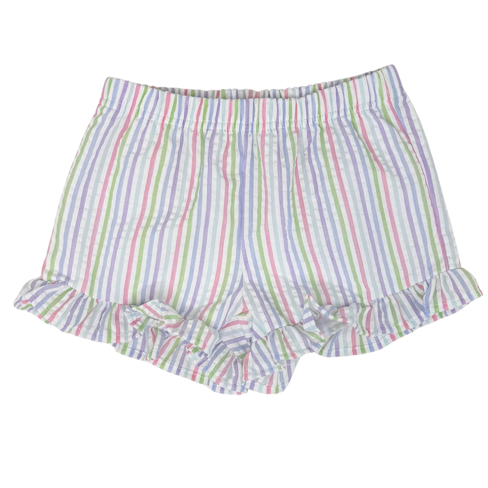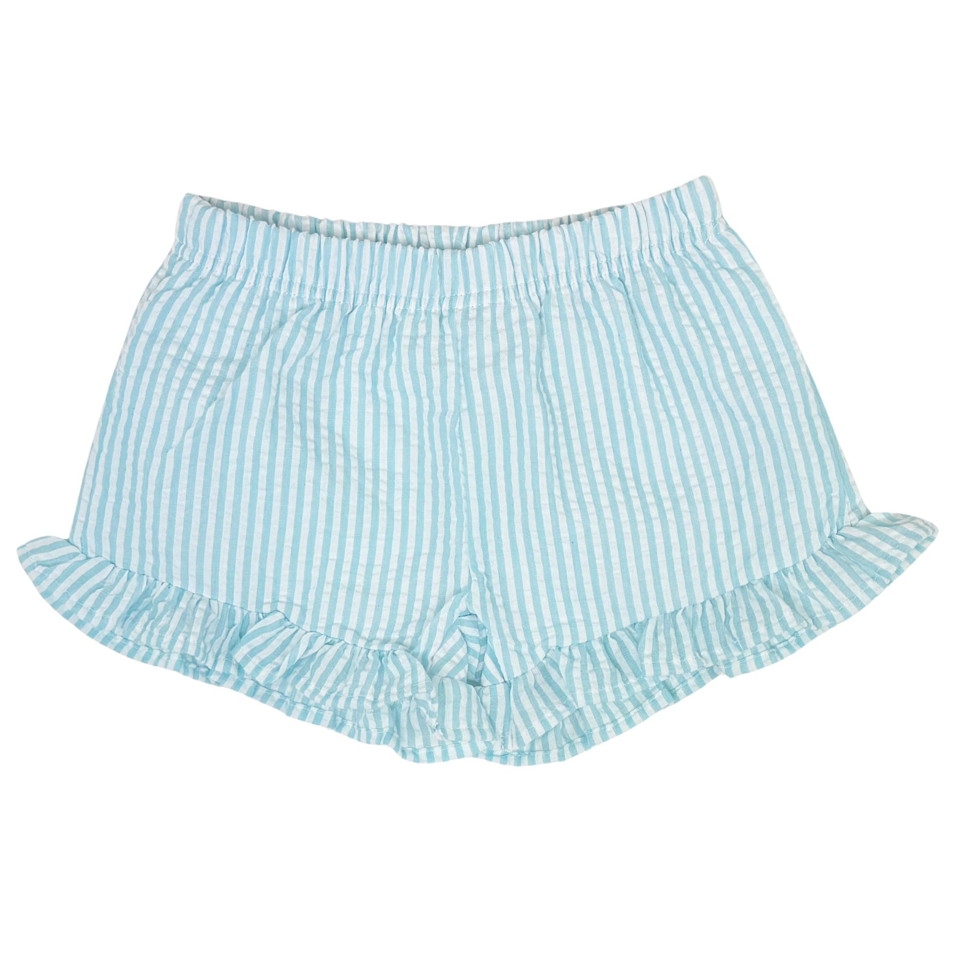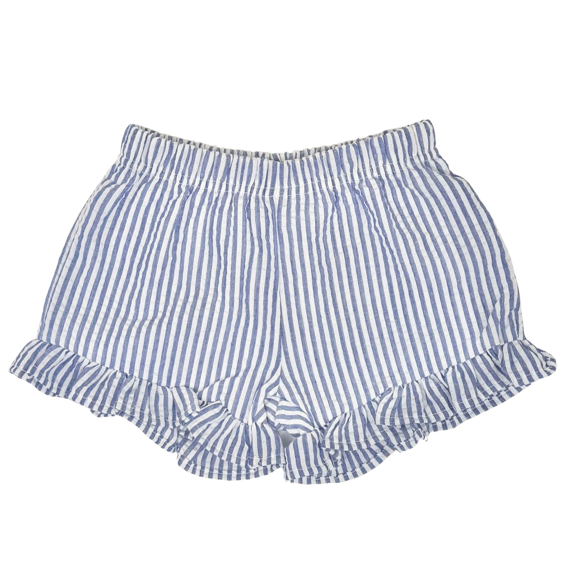 Dress your little girl in style and comfort with our girls' ruffled seersucker shorties. Made from 100% cotton, these shorties feature a fully lined design for added comfort. The elastic waist ensures a perfect fit, while the double stitching along the hem adds durability. Let your little one play and explore with ease in these adorable, ruffled seersucker shorties. Explore our collection at Love That Cotton and discover the perfect summer outfit. Wholesale accounts available.