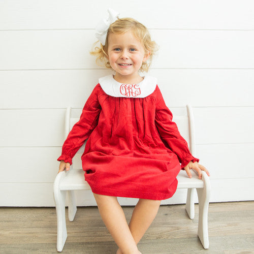 Our girl's bishop dress is made of 100% Cotton corduroy. It is fully lined, and perfect for your special occasion. We offer embroidery on all of our kids clothing and baby gifts. Are you a business? Please sign up for a wholesale account.