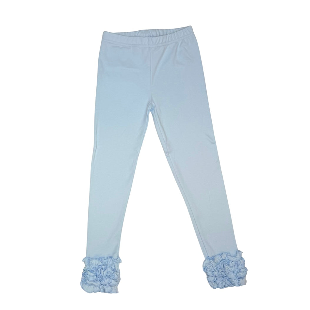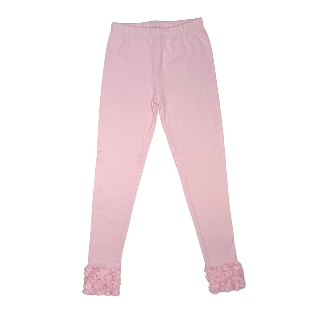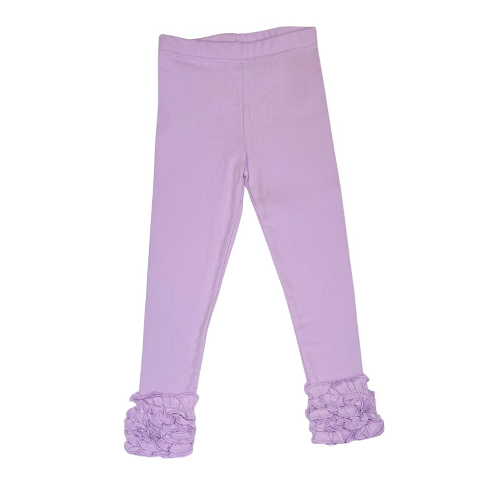 Add a touch of cuteness to your little girl's outfit with our girls ruffle leggings. Made of 100 percent interlock cotton, these leggings are comfortable and versatile. They feature an elastic waistband and four rows of adorable ruffles. Dress them up or down for any occasion. Available in multiple colors, these leggings are a must-have for your little one's wardrobe. Sign up for a wholesale account at Love That Cotton if you're a business. Shop now and make your girl's wardrobe extra special with these charming ruffle leggings.