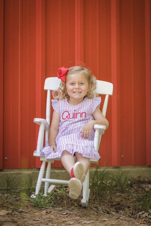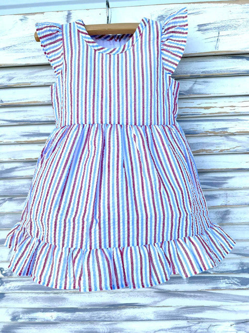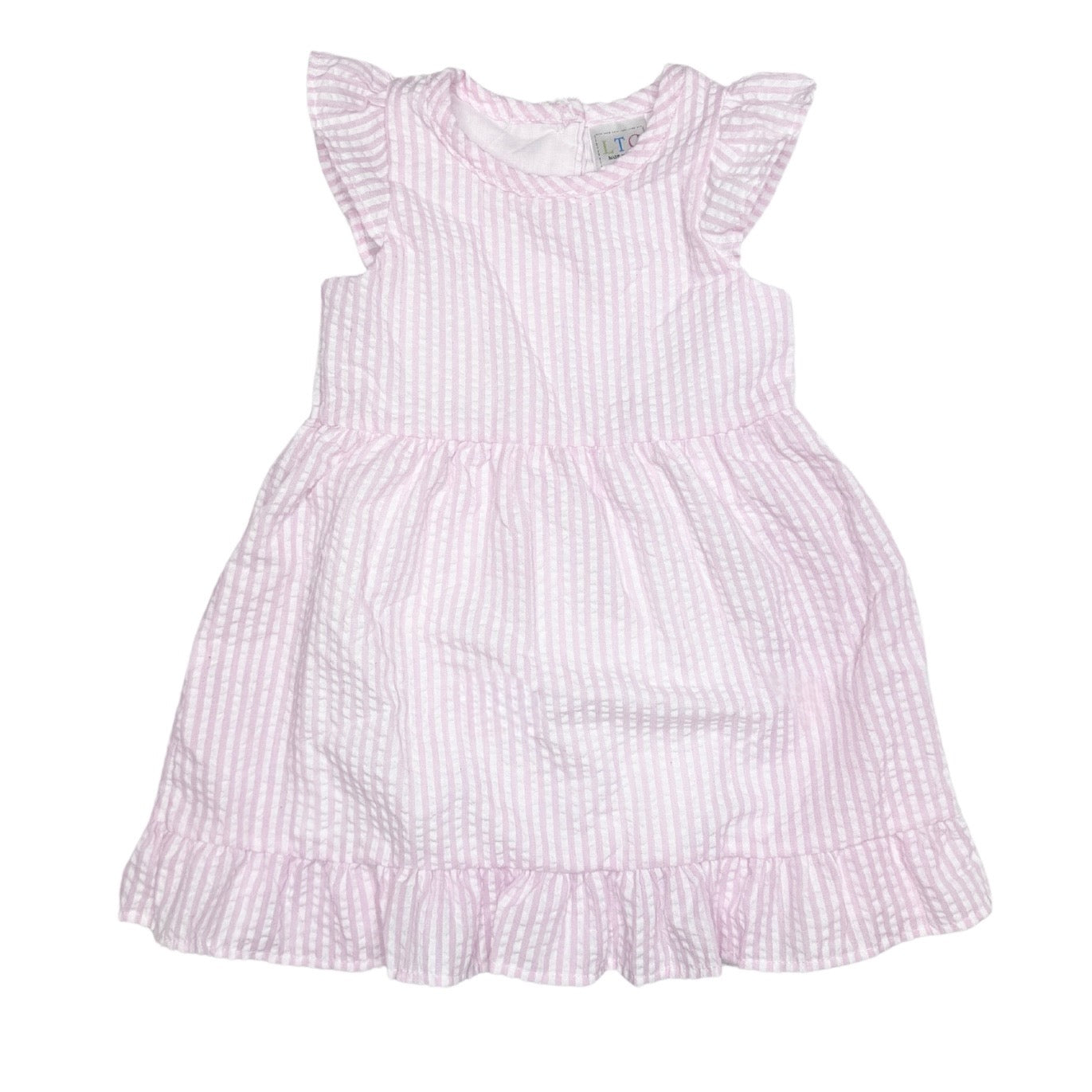 Get your little girl looking her best with our high-quality Girls Seersucker Dress. Made from 100% cotton and fully lined, this dress is comfortable, durable, and perfect for any occasion. The flutter sleeve, ruffle along the bottom, and empire waist add a touch of elegance, making your child look and feel like a princess.