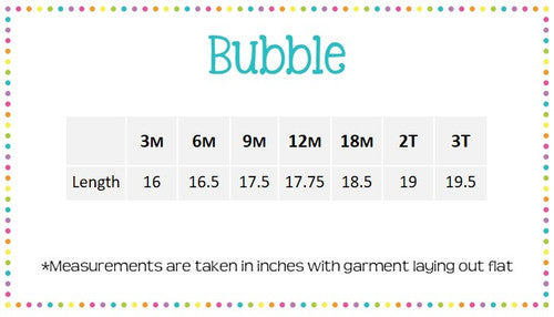 Our unisex bubble is super comfortable. There is binding around the neck, with snaps in the crotch. It is featured in several colors. Make sure you pick up one of each. Remember that we offer embroidery on all of our kids clothing and baby gifts. Are you a business? Please sign up for a wholesale account.