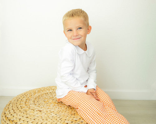 Introduce classic charm to your child's wardrobe with our Peter Pan collar shirt. Made from 100% interlock cotton (190g), this high-quality shirt features a timeless Peter Pan collar and a convenient button opening on the backside. With double stitching throughout, it ensures durability for long-lasting wear. Discover the perfect blend of style and comfort with our Peter Pan collar shirt. Explore our collection at Love That Cotton and elevate your child's fashion. Wholesale accounts available