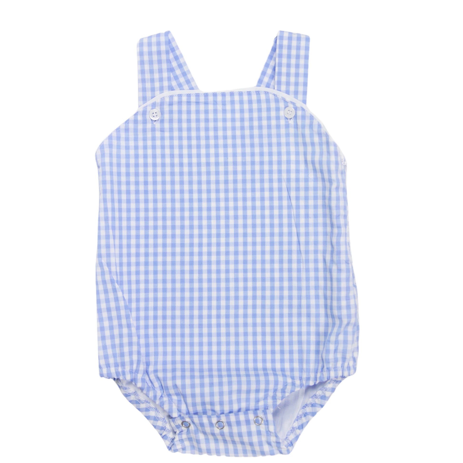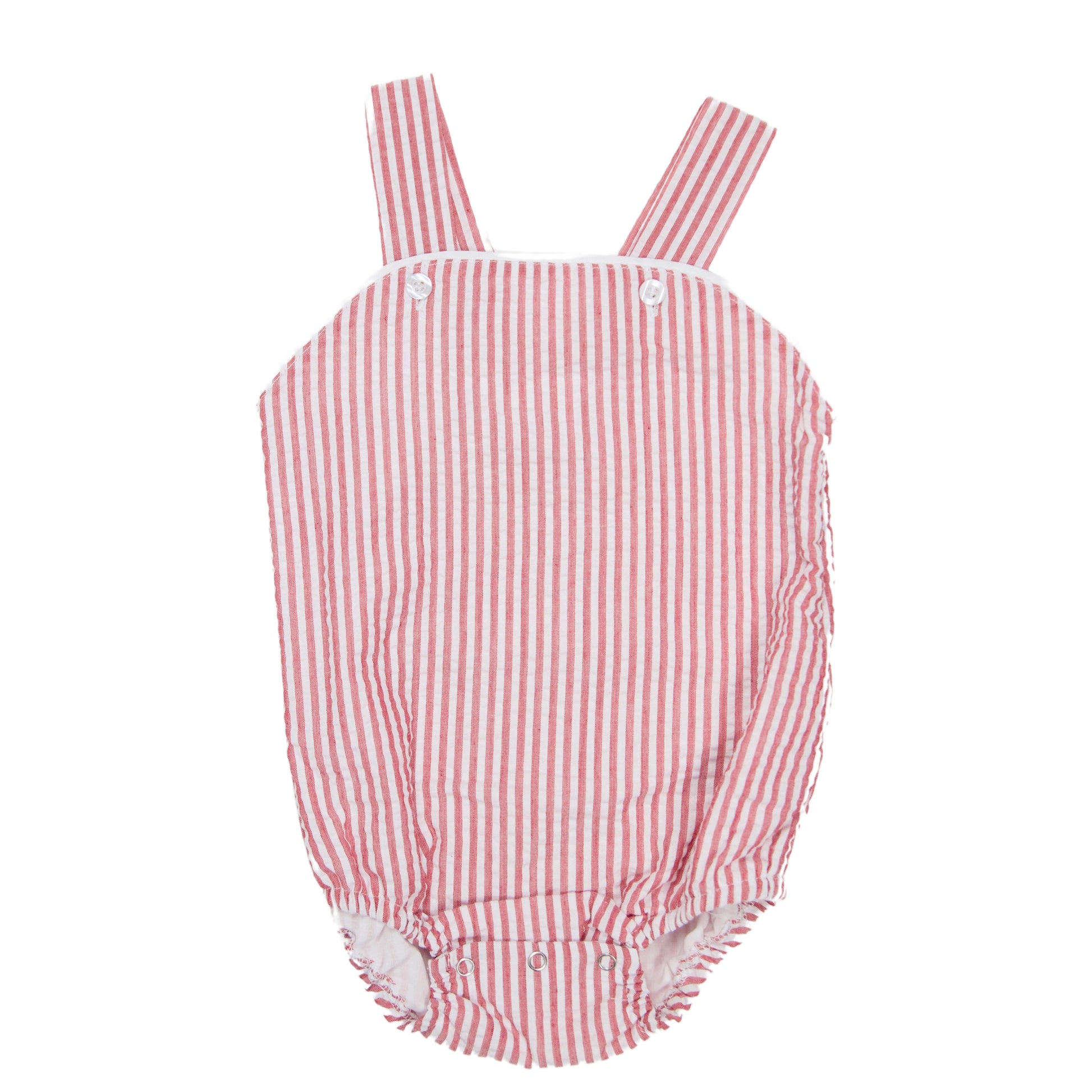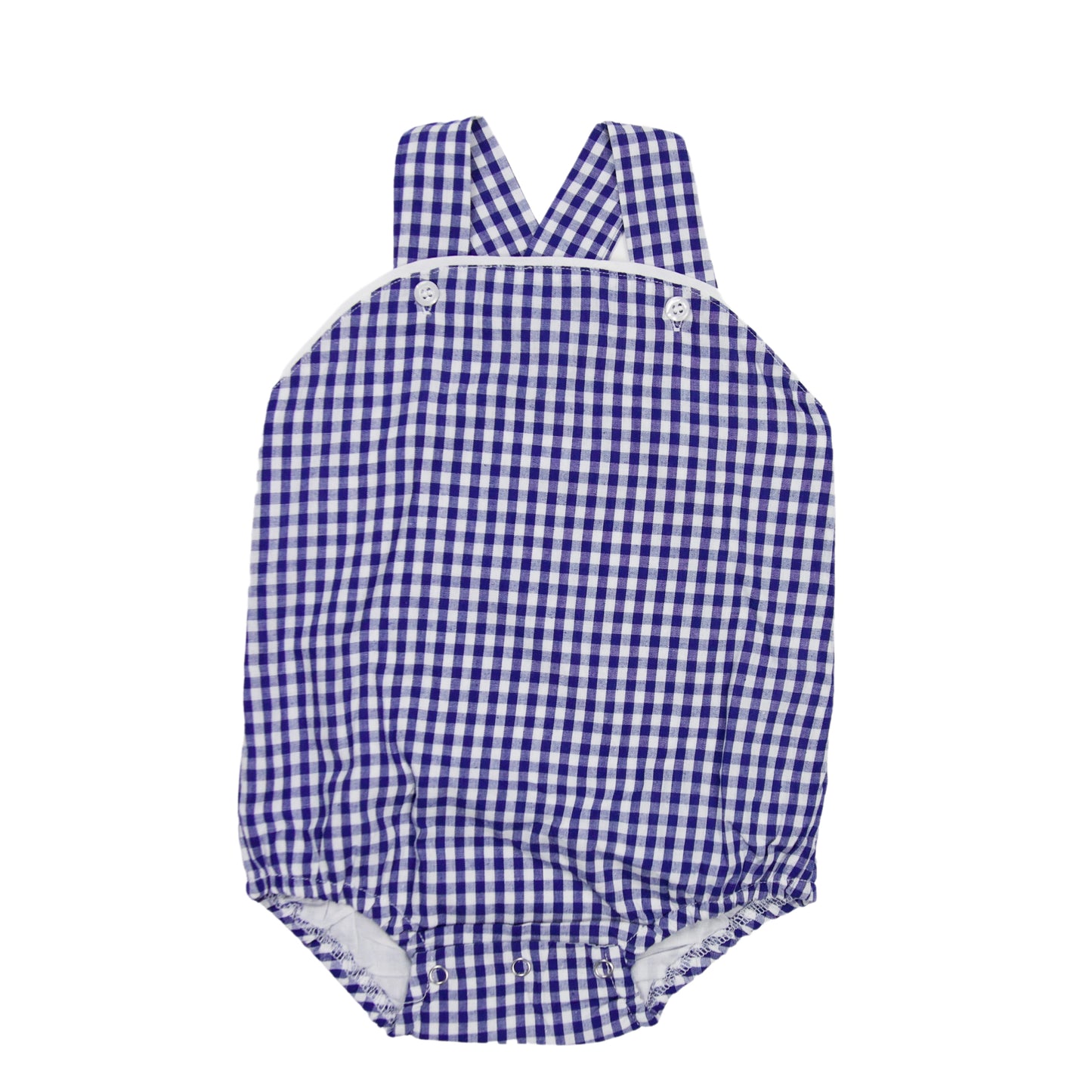 Dress your little one in our adorable unisex sunsuit for those sunny summer days. Made of 100% cotton and available in multiple colors, this sunsuit is perfect for any occasion. It features a fully lined design for added comfort and durability. With snaps in the crotch and buttons on the shoulder straps, it's easy to dress and undress your baby. The elastic in the leg openings ensures a snug fit. Choose from red and white gingham check or navy and white gingham check options. Personalize it with embroidery to make it extra special. Shop now and sign up for a wholesale account at Love That Cotton if you're a business. Your little one will look adorable and feel comfortable in this sunsuit!