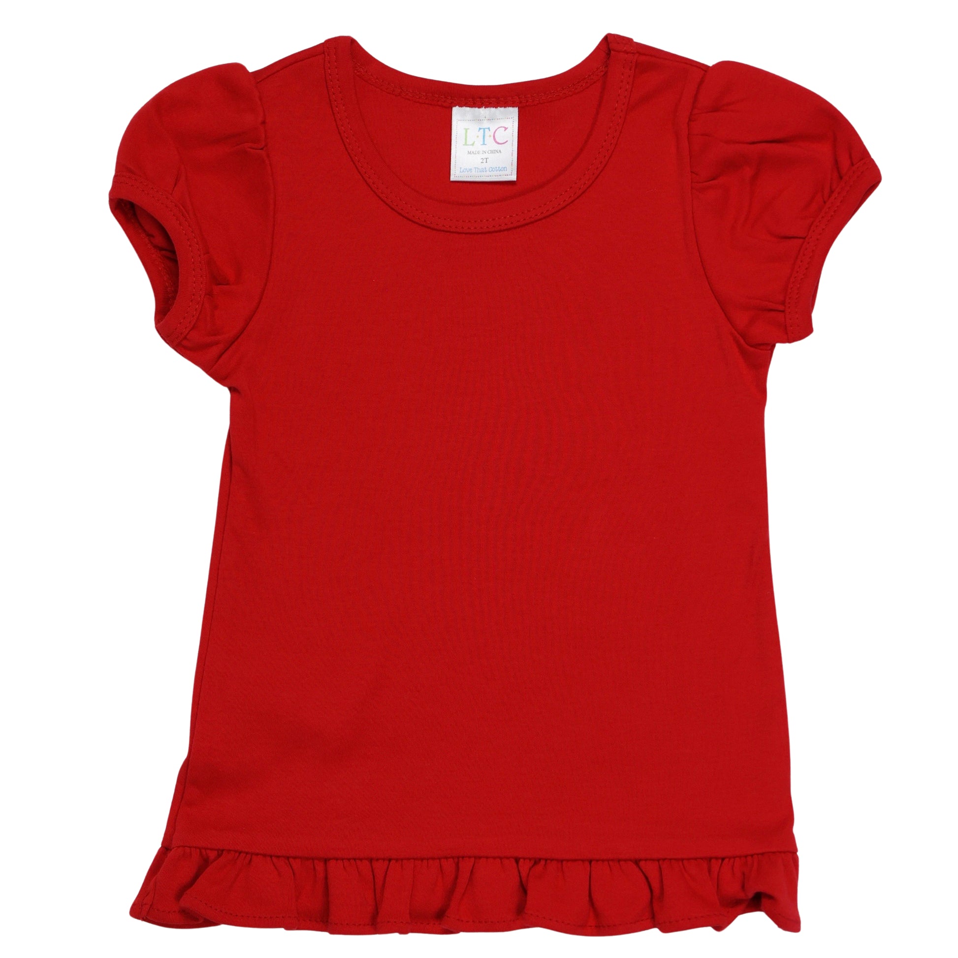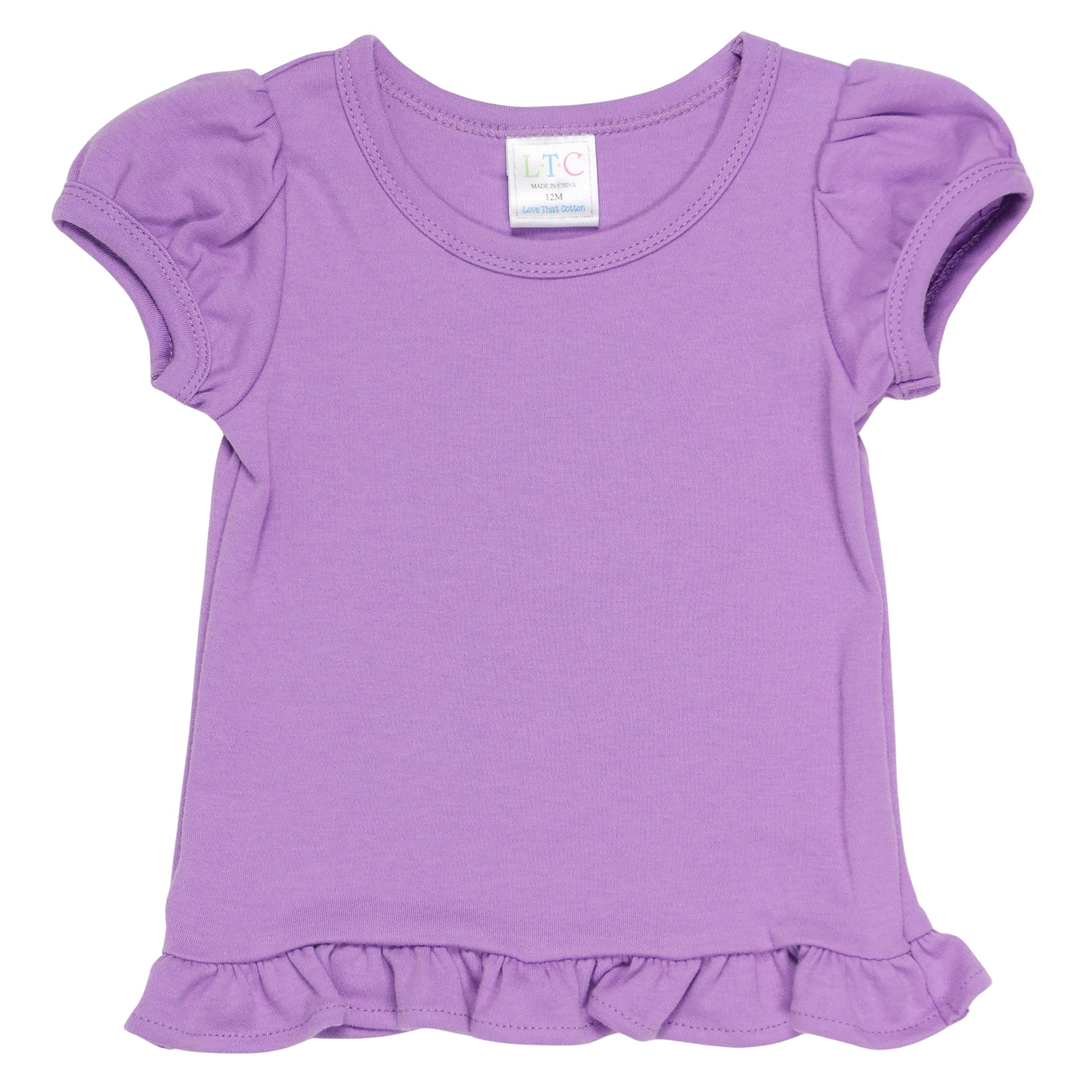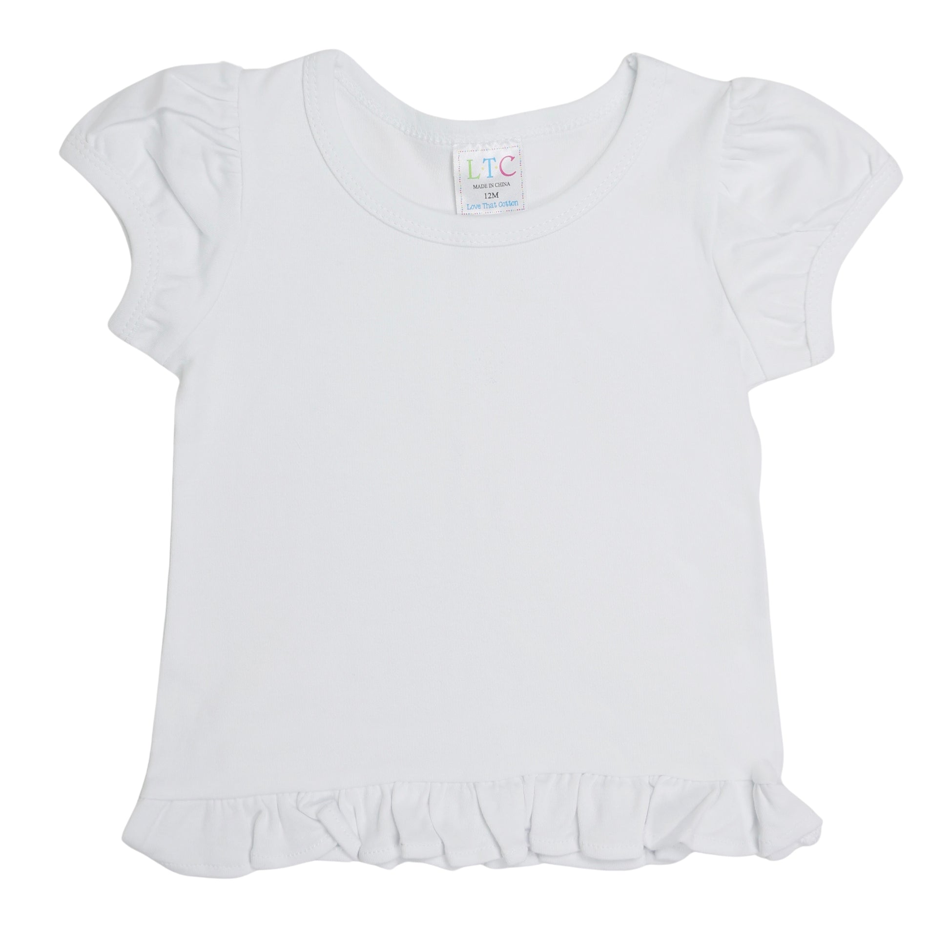 Elevate your child's style with our girls' puff sleeve shirt with ruffle bottom. Made from 100% cotton (5.5 ounces), this versatile shirt is perfect for any occasion. Whether you want to dress it up or down, it offers both comfort and style. Customize it with a monogram or applique for a personalized touch. Explore our collection at Love That Cotton and discover the perfect shirt for your little one. Wholesale accounts available.