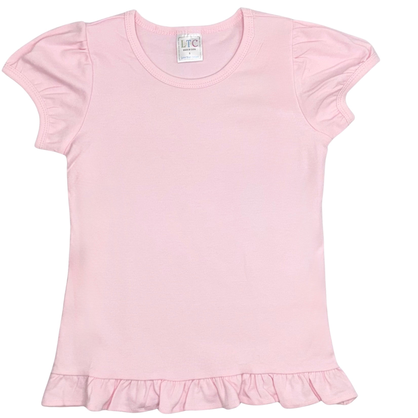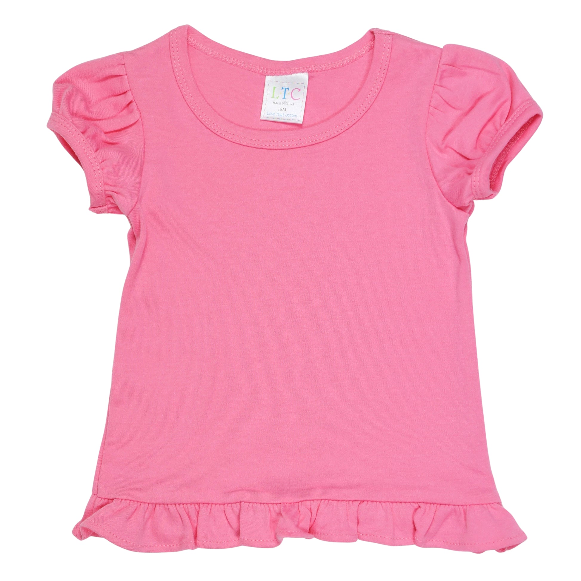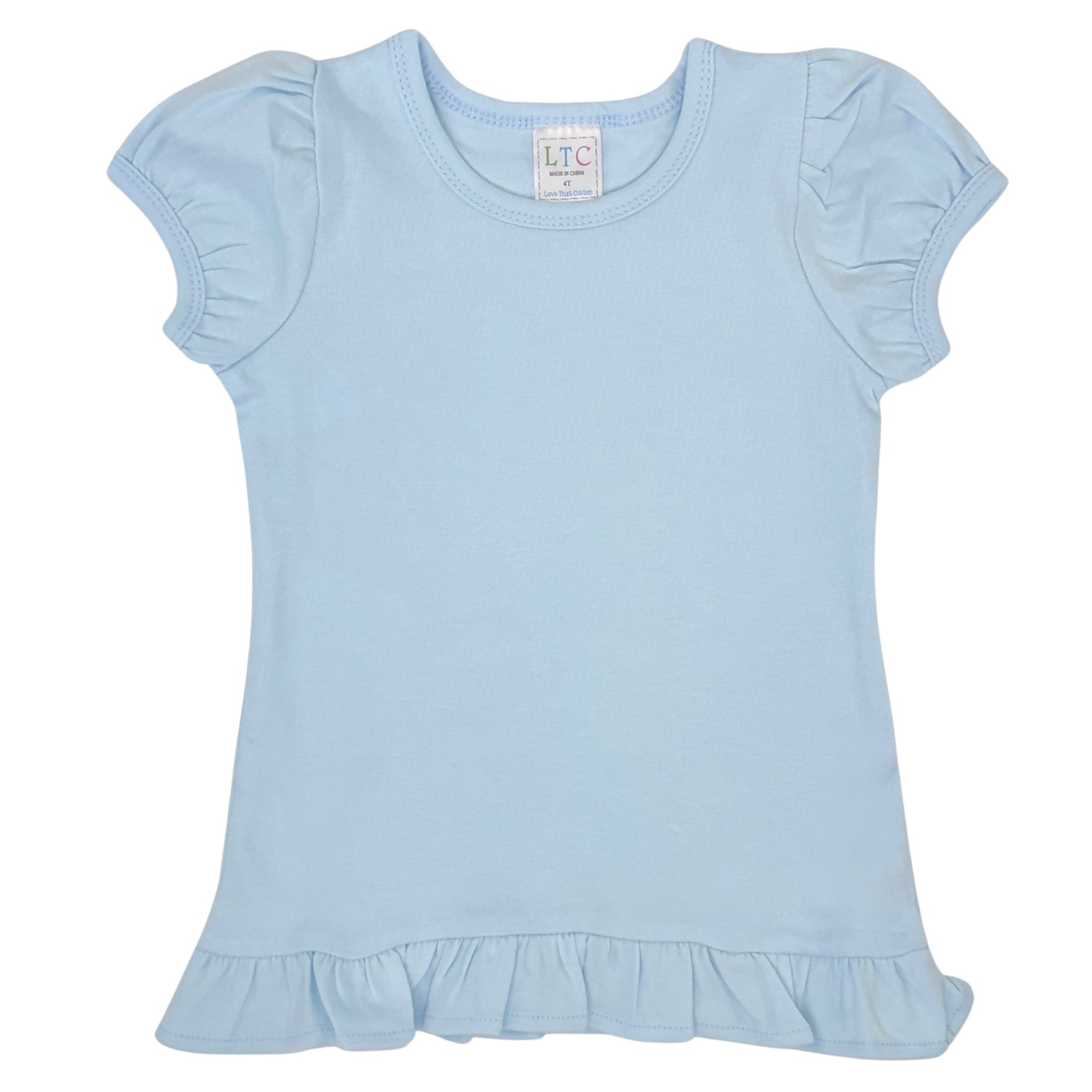 Elevate your child's style with our girls' puff sleeve shirt with ruffle bottom. Made from 100% cotton (5.5 ounces), this versatile shirt is perfect for any occasion. Whether you want to dress it up or down, it offers both comfort and style. Customize it with a monogram or applique for a personalized touch. Explore our collection at Love That Cotton and discover the perfect shirt for your little one. Wholesale accounts available.