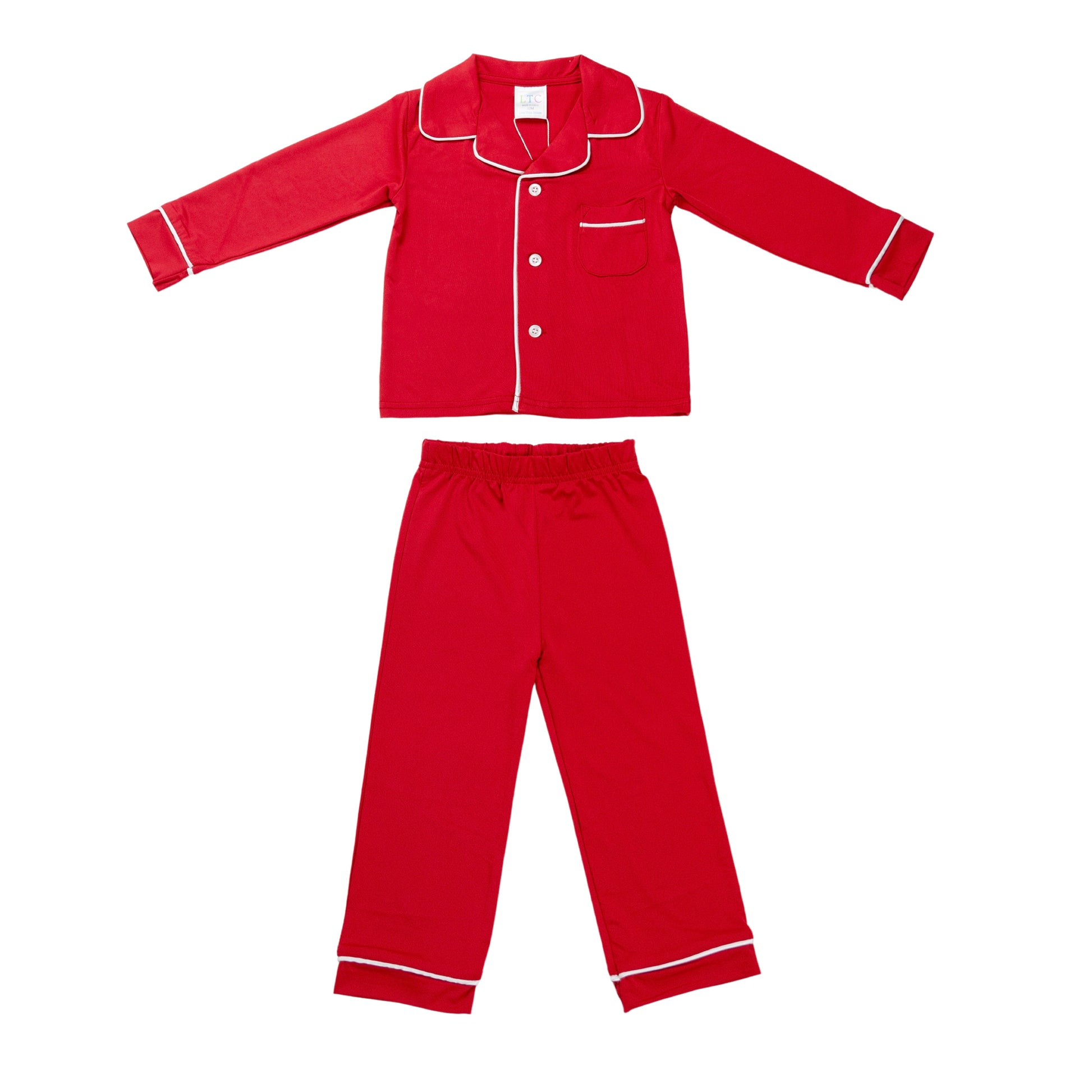 Our Youth Lounge Set is perfect for both boys and girls, offering a classic, comfortable, and chic look that's perfect for any occasion. This 2-piece pajama set includes a top and pants, both of which are trimmed in white piping for added style.